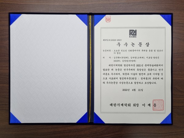 김준환 연구원, 2022년 춘계 대한기계학회 우수논문상 수상